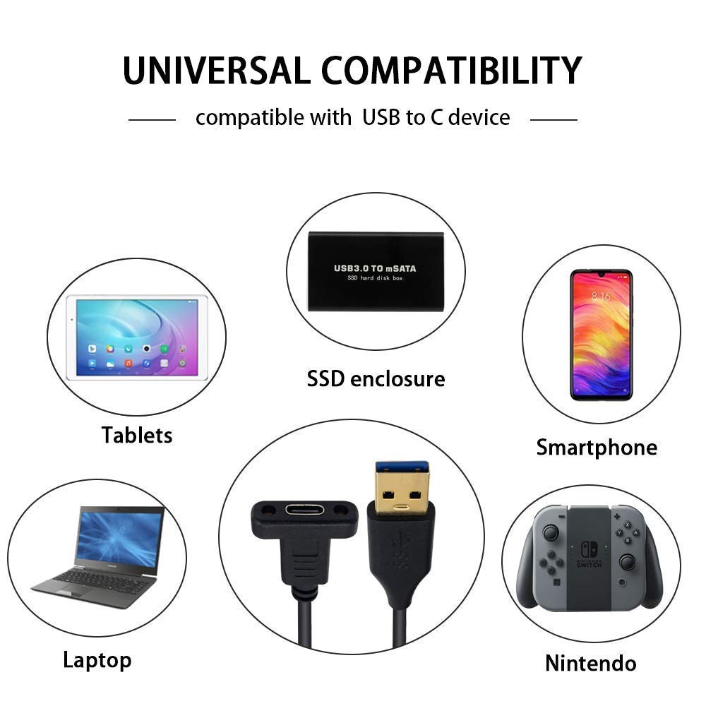 Usb C Female To Usb Male Adapter Cable With Screw Panel Mount For Data And Charging. Panel Mount Usb C Female Connector For Embedded Installations(Not Including Screws) This Type C To Usb A Adapter Offers Data Transfer Speeds Of Up To 480 Mbps Between Connected Devices And Also Supports Up To 2 Amps Of Power Output For Charging Your Devices. Enjoy The Fast And Safe Charging.
